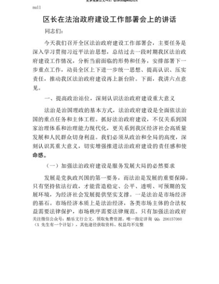 【七哥公文】2025年:【七哥公文】区长在法治政府建设工作部署会上的讲话+更多免费公文+VX:QiGeGongWen2024+更多免费公文+VX:QiGeGongWen2024