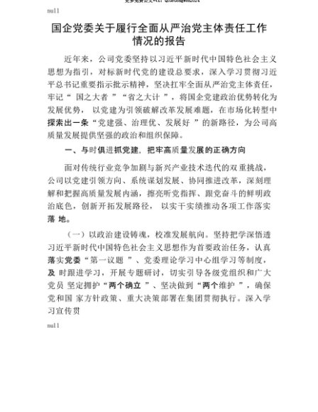 【七哥公文】2025年:【七哥公文】国企X委关于履行全面从严治X主体责任工作情况的报告+更多免费公文+VX:QiGeGongWen2024+更多免费公文+VX:QiGeGongWen2024