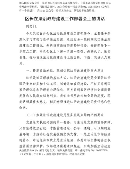【七哥公文】2025年:【七哥公文】区长在法治政府建设工作部署会上的讲话+更多免费公文+VX:QiGeGongWen2024+更多免费公文+VX:QiGeGongWen2024