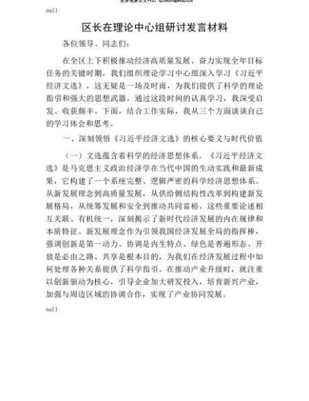 【七哥公文】2025年:【七哥公文】区长在理论中心组研讨发言材料+更多免费公文+VX:QiGeGongWen2024+更多免费公文+VX:QiGeGongWen2024
