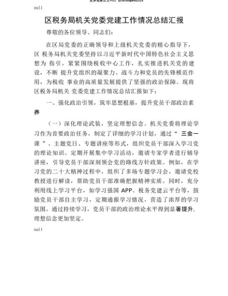 【七哥公文】2025年:【七哥公文】区税务局机关X委X建工作情况总结汇报+更多免费公文+VX:QiGeGongWen2024+更多免费公文+VX:QiGeGongWen2024