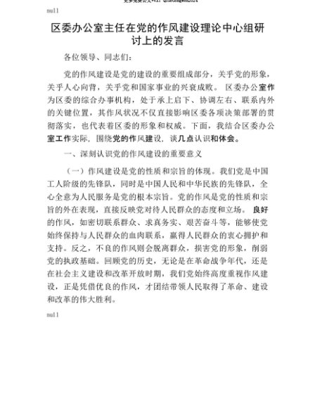 【七哥公文】2025年:【七哥公文】区委办公室主任在X的作风建设理论中心组研讨上的发言+更多免费公文+VX:QiGeGongWen2024+更多免费公文+VX:QiGeGongWen2024