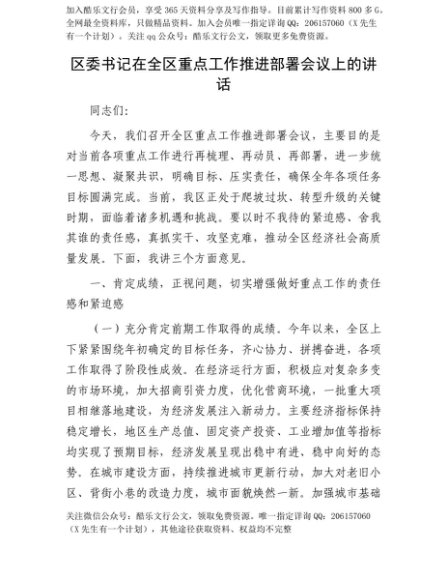 【七哥公文】2025年:【七哥公文】区委书记在全区重点工作推进部署会议上的讲话+更多免费公文+VX:QiGeGongWen2024+更多免费公文+VX:QiGeGongWen2024