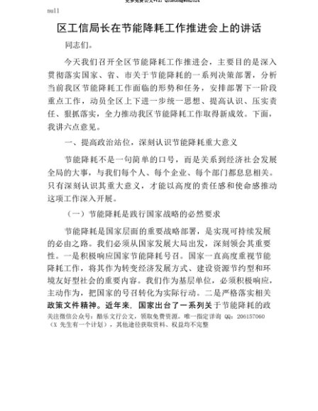 【七哥公文】2025年:【七哥公文】区工信局长在节能降耗工作推进会上的讲话+更多免费公文+VX:QiGeGongWen2024+更多免费公文+VX:QiGeGongWen2024