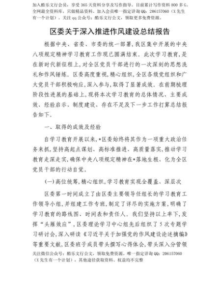 【七哥公文】2025年:【七哥公文】区委关于深入推进作风建设总结报告+更多免费公文+VX:QiGeGongWen2024+更多免费公文+VX:QiGeGongWen2024