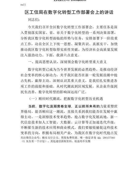 【七哥公文】2025年:【七哥公文】区工信局在数字化转型工作部署会上的讲话+更多免费公文+VX:QiGeGongWen2024+更多免费公文+VX:QiGeGongWen2024