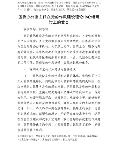 【七哥公文】2025年:【七哥公文】区委办公室主任在X的作风建设理论中心组研讨上的发言+更多免费公文+VX:QiGeGongWen2024+更多免费公文+VX:QiGeGongWen2024