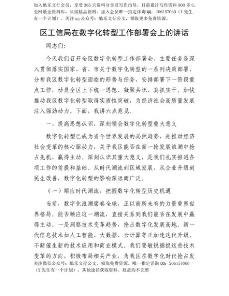 【七哥公文】2025年:【七哥公文】区工信局在数字化转型工作部署会上的讲话+更多免费公文+VX:QiGeGongWen2024+更多免费公文+VX:QiGeGongWen2024