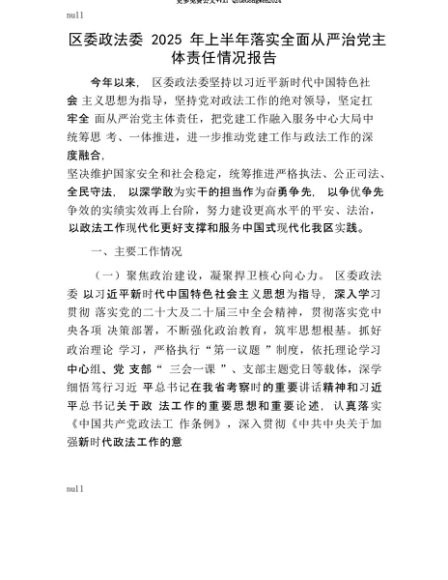 【七哥公文】2025年:【七哥公文】区委政法委2025年上半年落实全面从严治X主体责任情况报告+更多免费公文+VX:QiGeGongWen2024+更多免费公文+VX:QiGeGongWen2024