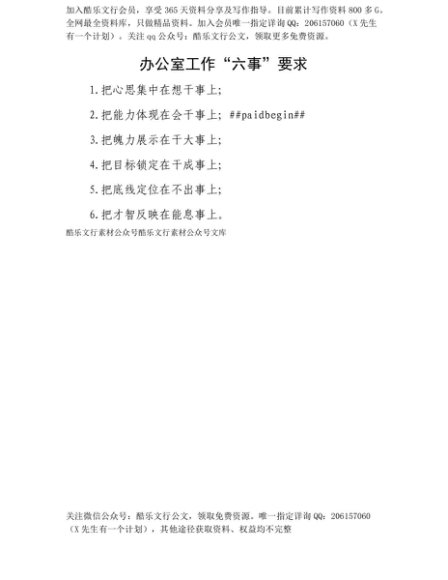 【七哥公文】2025年:【七哥公文】办公室工作“六事”要求+更多免费公文+VX:QiGeGongWen2024+更多免费公文+VX:QiGeGongWen2024