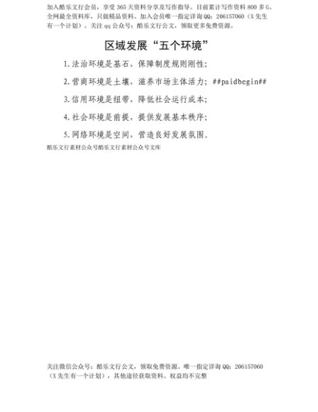 【七哥公文】2025年:【七哥公文】区域发展“五个环境”+更多免费公文+VX:QiGeGongWen2024+更多免费公文+VX:QiGeGongWen2024