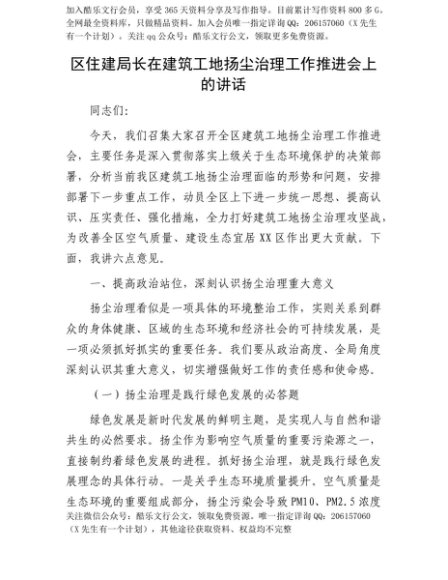 【七哥公文】2025年:【七哥公文】区住建局长在建筑工地扬尘治理工作推进会上的讲话+更多免费公文+VX:QiGeGongWen2024+更多免费公文+VX:QiGeGongWen2024