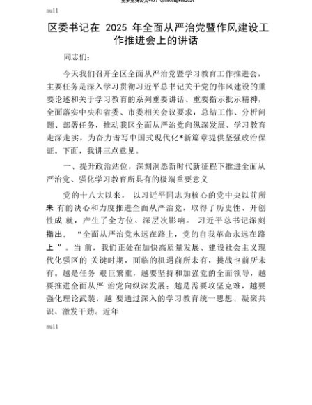 【七哥公文】2025年:【七哥公文】区委书记在2025年全面从严治X暨作风建设工作推进会上的讲话+更多免费公文+VX:QiGeGongWen2024+更多免费公文+VX:QiGeGongWen2024