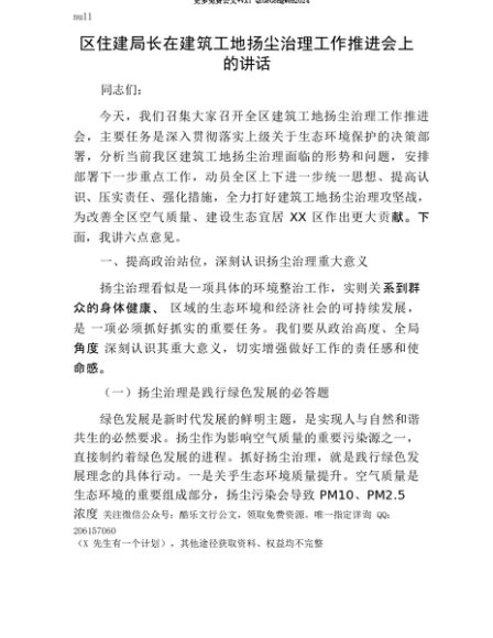 【七哥公文】2025年:【七哥公文】区住建局长在建筑工地扬尘治理工作推进会上的讲话+更多免费公文+VX:QiGeGongWen2024+更多免费公文+VX:QiGeGongWen2024