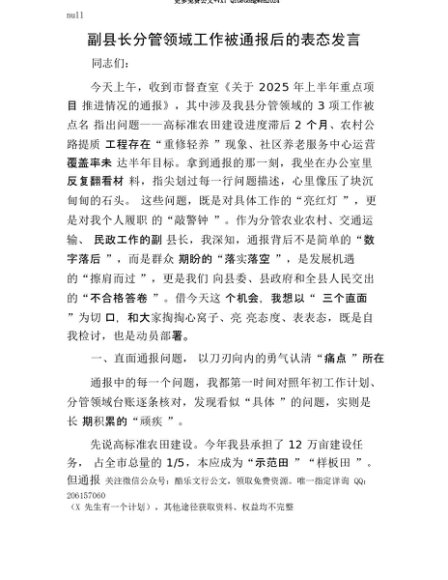 【七哥公文】2025年:【七哥公文】副县长分管领域工作被通报后的表态发言+更多免费公文+VX:QiGeGongWen2024+更多免费公文+VX:QiGeGongWen2024