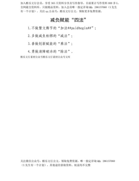 【七哥公文】2025年:【七哥公文】减负赋能“四法”+更多免费公文+VX:QiGeGongWen2024+更多免费公文+VX:QiGeGongWen2024
