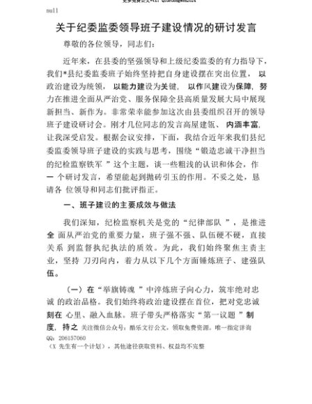 【七哥公文】2025年:【七哥公文】关于纪委监委领导班子建设情况的研讨发言+更多免费公文+VX:QiGeGongWen2024+更多免费公文+VX:QiGeGongWen2024