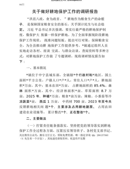 【七哥公文】2025年:【七哥公文】关于做好耕地保护工作的调研报告+更多免费公文+VX:QiGeGongWen2024+更多免费公文+VX:QiGeGongWen2024