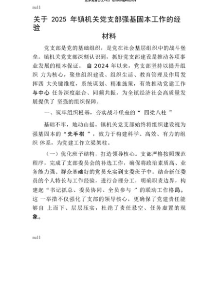 【七哥公文】2025年:【七哥公文】关于2025年镇机关X支部强基固本工作的经验材料+更多免费公文+VX:QiGeGongWen2024+更多免费公文+VX:QiGeGongWen2024