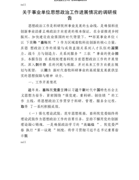 【七哥公文】2025年:【七哥公文】关于事业单位思想ZZ工作进展情况的调研报告+更多免费公文+VX:QiGeGongWen2024+更多免费公文+VX:QiGeGongWen2024