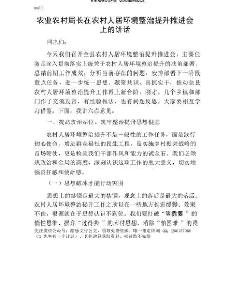 【七哥公文】2025年:【七哥公文】农业农村局长在农村人居环境整治提升推进会上的讲话+更多免费公文+VX:QiGeGongWen2024+更多免费公文+VX:QiGeGongWen2024