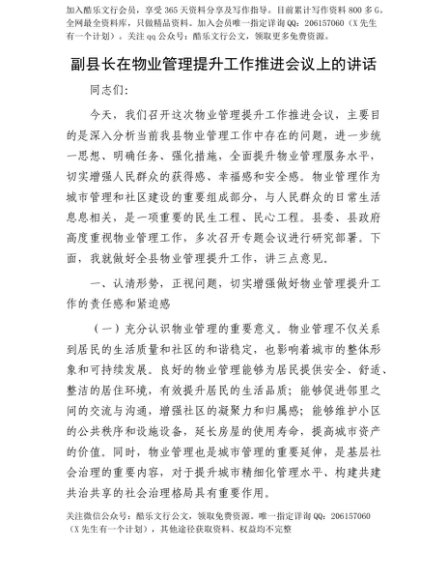 【七哥公文】2025年:【七哥公文】副县长在物业管理提升工作推进会议上的讲话+更多免费公文+VX:QiGeGongWen2024+更多免费公文+VX:QiGeGongWen2024