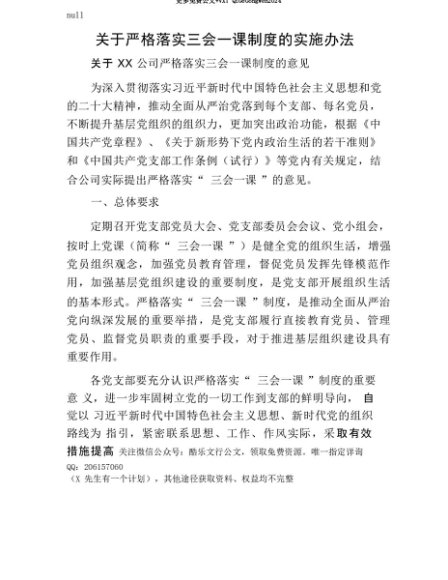 【七哥公文】2025年:【七哥公文】关于严格落实三会一课制度的实施办法+更多免费公文+VX:QiGeGongWen2024+更多免费公文+VX:QiGeGongWen2024
