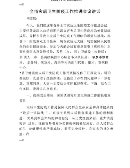 【七哥公文】2025年:【七哥公文】全市灾后卫生防疫工作推进会议讲话+更多免费公文+VX:QiGeGongWen2024+更多免费公文+VX:QiGeGongWen2024