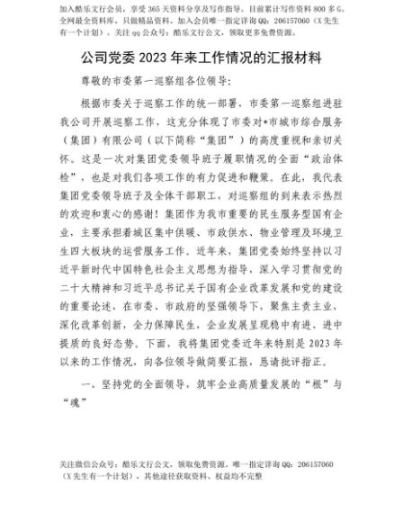 【七哥公文】2025年:【七哥公文】公司X委2023年来工作情况的汇报材料+更多免费公文+VX:QiGeGongWen2024+更多免费公文+VX:QiGeGongWen2024