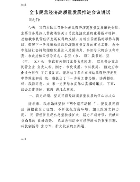 【七哥公文】2025年:【七哥公文】全市民营经济高质量发展推进会议讲话+更多免费公文+VX:QiGeGongWen2024+更多免费公文+VX:QiGeGongWen2024