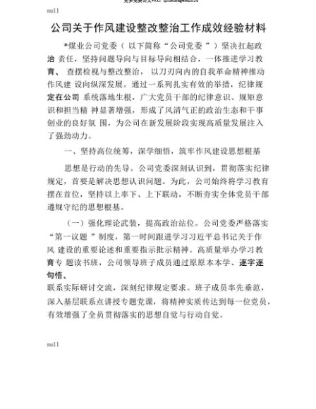 【七哥公文】2025年:【七哥公文】公司关于作风建设整改整治工作成效经验材料+更多免费公文+VX:QiGeGongWen2024+更多免费公文+VX:QiGeGongWen2024