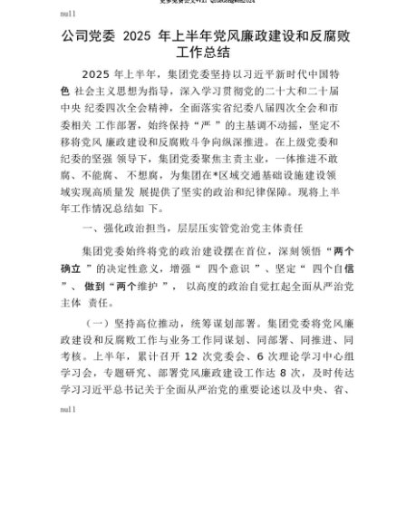 【七哥公文】2025年:【七哥公文】公司X委2025年上半年X风廉政建设和反腐败工作总结+更多免费公文+VX:QiGeGongWen2024+更多免费公文+VX:QiGeGongWen2024