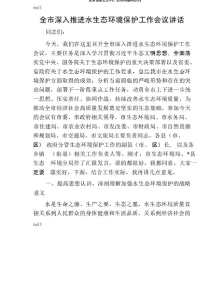 【七哥公文】2025年:【七哥公文】全市深入推进水生态环境保护工作会议讲话+更多免费公文+VX:QiGeGongWen2024+更多免费公文+VX:QiGeGongWen2024