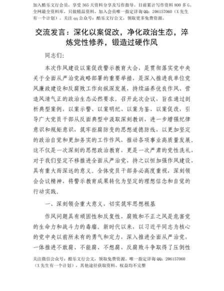 【七哥公文】2025年:【七哥公文】交流发言:深化以案促改,净化ZZ生态,淬炼X性修养,锻造过硬作风+更多免费公文+VX:QiGeGongWen2024+更多免费公文+VX:QiGeGongWen2024