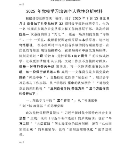 【七哥公文】2025年:【七哥公文】2025年X校学习培训个人X性分析材料+更多免费公文+VX:QiGeGongWen2024+更多免费公文+VX:QiGeGongWen2024