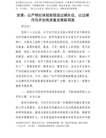 【七哥公文】2025年:【七哥公文】X课:以严明纪律规矩锻造过硬队伍,以过硬作风开创高质量发展新局面+更多免费公文+VX:QiGeGongWen2024+更多免费公文+VX:QiGeGongWen2024