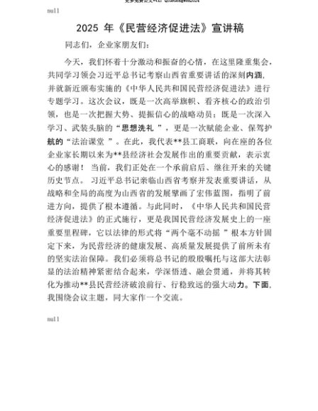 【七哥公文】2025年:【七哥公文】2025年《民营经济促进法》宣讲稿+更多免费公文+VX:QiGeGongWen2024+更多免费公文+VX:QiGeGongWen2024