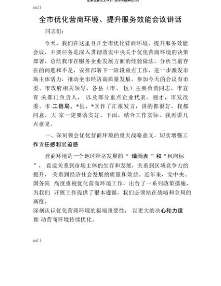 【七哥公文】2025年:【七哥公文】全市优化营商环境、提升服务效能会议讲话+更多免费公文+VX:QiGeGongWen2024+更多免费公文+VX:QiGeGongWen2024