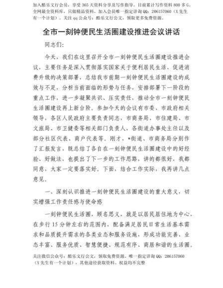 【七哥公文】2025年:【七哥公文】全市一刻钟便民生活圈建设推进会议讲话+更多免费公文+VX:QiGeGongWen2024+更多免费公文+VX:QiGeGongWen2024