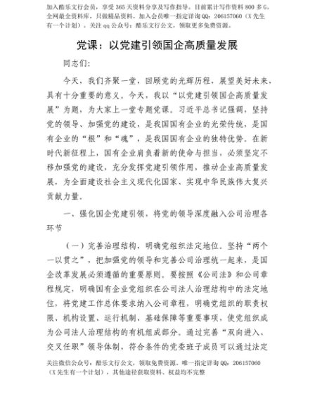 【七哥公文】2025年:【七哥公文】X课:以X建引领国企高质量发展+更多免费公文+VX:QiGeGongWen2024+更多免费公文+VX:QiGeGongWen2024