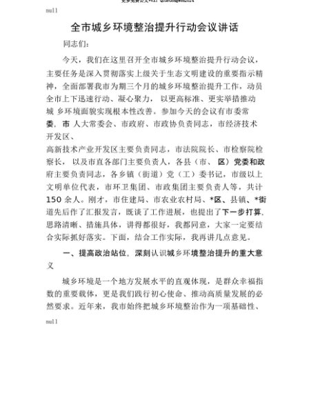 【七哥公文】2025年:【七哥公文】全市城乡环境整治提升行动会议讲话+更多免费公文+VX:QiGeGongWen2024+更多免费公文+VX:QiGeGongWen2024
