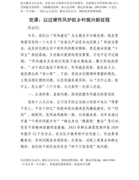 【七哥公文】2025年:【七哥公文】X课:以过硬作风护航乡村振兴新征程+更多免费公文+VX:QiGeGongWen2024+更多免费公文+VX:QiGeGongWen2024