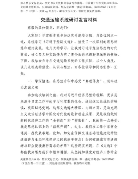 【七哥公文】2025年:【七哥公文】交通运输系统研讨发言材料+更多免费公文+VX:QiGeGongWen2024+更多免费公文+VX:QiGeGongWen2024
