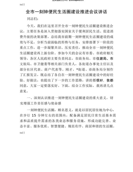 【七哥公文】2025年:【七哥公文】全市一刻钟便民生活圈建设推进会议讲话+更多免费公文+VX:QiGeGongWen2024+更多免费公文+VX:QiGeGongWen2024