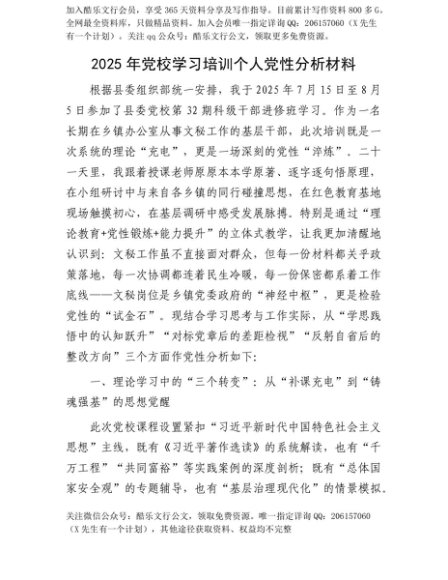 【七哥公文】2025年:【七哥公文】2025年X校学习培训个人X性分析材料+更多免费公文+VX:QiGeGongWen2024+更多免费公文+VX:QiGeGongWen2024
