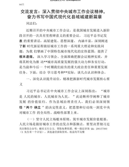 【七哥公文】2025年:【七哥公文】交流发言:深入贯彻中央城市工作会议精神,奋力书写中国式现代化县域城建新篇章+更多免费公文+VX:QiGeGongWen2024+更多免费公文+VX:QiGeGongWen2024