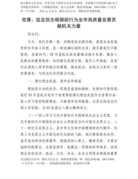 【七哥公文】2025年:【七哥公文】X课:坚定信念砥砺前行 为全市高质量发展贡献机关力量+更多免费公文+VX:QiGeGongWen2024+更多免费公文+VX:QiGeGongWen2024
