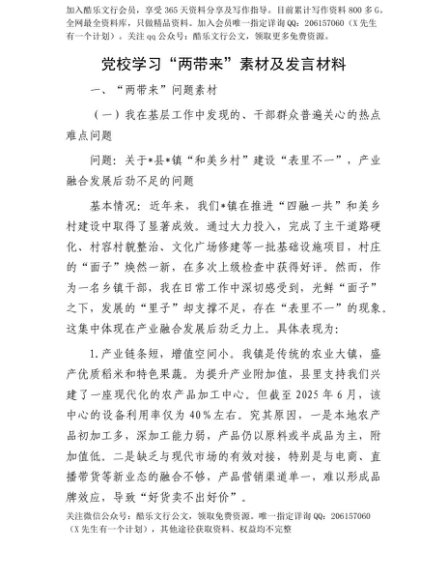 【七哥公文】2025年:【七哥公文】X校学习“两带来”素材及发言材料+更多免费公文+VX:QiGeGongWen2024+更多免费公文+VX:QiGeGongWen2024