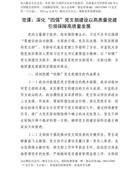 【七哥公文】2025年:【七哥公文】X课:深化“四强”X支部建设 以高质量X建引领保障高质量发展+更多免费公文+VX:QiGeGongWen2024+更多免费公文+VX:QiGeGongWen2024