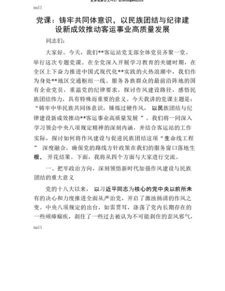 【七哥公文】2025年:【七哥公文】X课:铸牢共同体意识,以民族团结与纪律建设新成效推动客运事业高质量发展+更多免费公文+VX:QiGeGongWen2024+更多免费公文+VX:QiGeGongWen2024